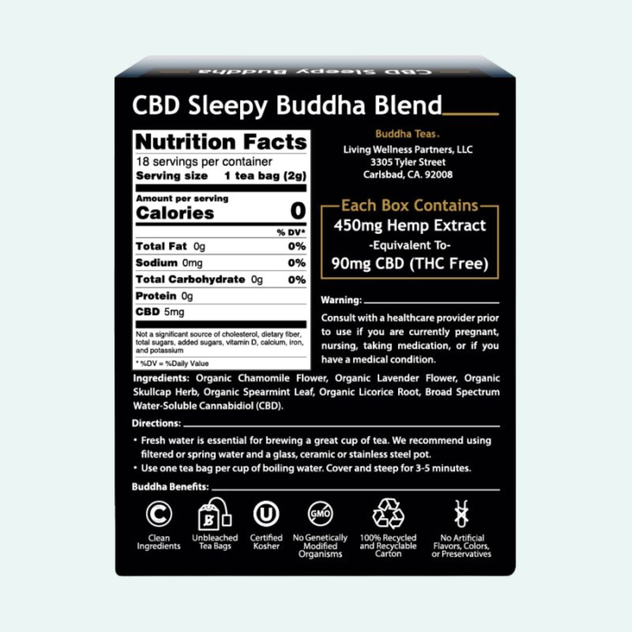 Our CBD Sleepy Buddha Blend is always perfectly contained in bleach-free tea bags and offers a mix of carefully selected herbs to prepare you for a restful night and a refreshing morning. It’s among the best teas for sleep and anxiety, combining CBD with powerful botanicals that promote relaxation and emotional balance.
